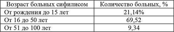 Врач Н. Ф. Плюшкин[56], исследовавший в 1898 г. причины венерических заболеваний в Псковской губернии, выявил преобладание детей и мужчин, болеющих сифилисом.