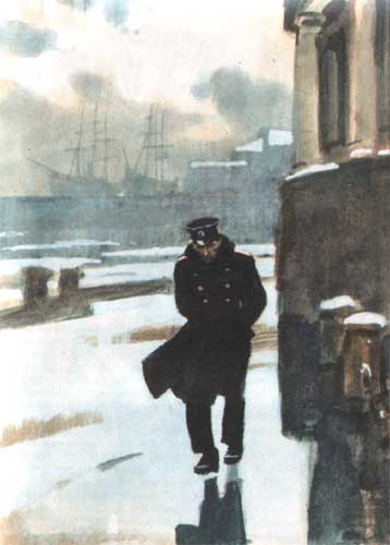 А между тем навряд ли был на корвете человек, который бы ждал прихода в Кронштадт с таким страстным нетерпением, как этот самый “непроницаемый” Никандр Миронович, целомудренно-ревниво таивший от посторонних глаз свои чувства, словно бы боясь профанировать их и показаться смешным в образе влюбленного пожилого мужа.