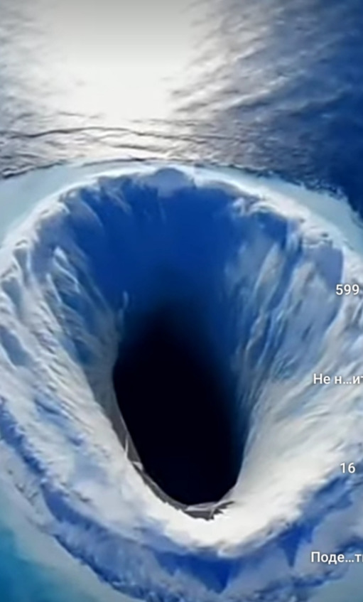 Вот, пожалуй, самая первая весточка о тех страшных событиях, которые ещё сохранились документально, о Всемирном Потопе и гибели страны: Атлантиды. На Рис – 3, показано место где 14 550 лет назад, от «Нашего Времени», был расположен огромный остров Атлантида (точнее, целый материк). Существуют древние карты, изображающие Гиперборею на Северном Полюсе. Этот материк был построен точно также как, и легендарная Атлантида, в виде креста. Северный – студёный океан по четырём рукавам – протокам впадал в огромную яму, расположенную в центре этого северного острова и низвергается в виде огромной водяной воронки в великую Яму, кажущуюся «БЕЗДНОЙ», расположенной в центре (это один из дренажных каналов Земли).