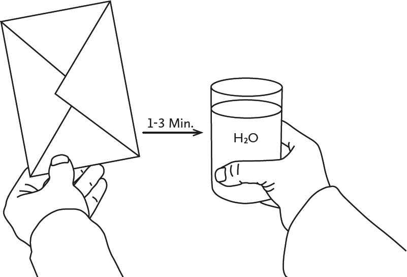 Probe in Briefumschlag geben, getestetes Zeichen daraufmalen und auf Wasser übertragen.
