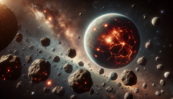 Вначале планета кипела, словно настоящий огненный ад. Создавались кора и весь будущий план континентов. Она была красна и черна, раскалена до предела. Бушевали вулканы, лава кипела в магматических разломах. Планету окутывало черным дымом и огромными дымовыми шлейфами от извергающихся вулканов. Время от времени раздавались чудовищные взрывы: это падали астероиды, которые, по задумке Некто, доставляли редкие в этой Вселенной, но такие необходимые строительные части для его будущего Сада.