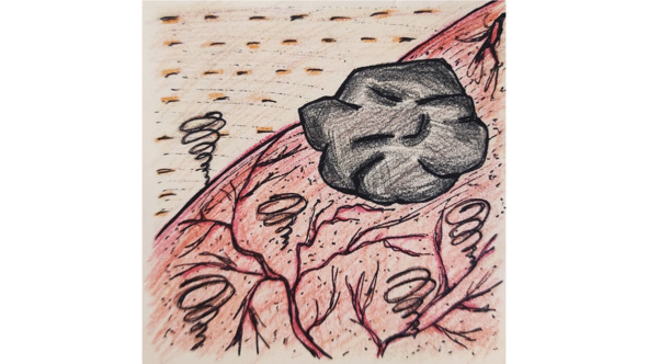 На этот раз Женя очутилась в неуютном пустынном месте, где почва была растрескавшейся и очень сухой. Крошечные смерчи кружили по безжизненной поверхности, всасывая в себя, подобно пылесосам, красный глиняный порошок. Куда ни глянь, на все четыре стороны простиралась лишь пустыня. Один единственный черный валун выбивался из пейзажа. Евгеше сразу захотелось укрыться за ним, чтобы вернуть себе чувство защищенности. И она двинулась прямиком к камню.