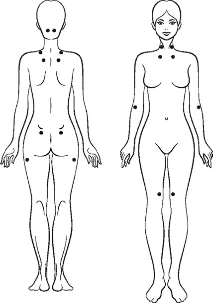 Рис. 1.1. Болезненные точки при фибромиалгии
