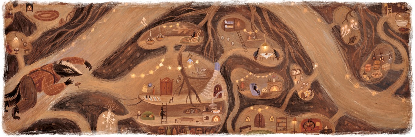 Барсук лизнул и обнюхал надпись. Потом нажал на звонок, и по ту сторону двери послышалось мелодичное жужжание, а затем – тихий шорох жучиных лапок.