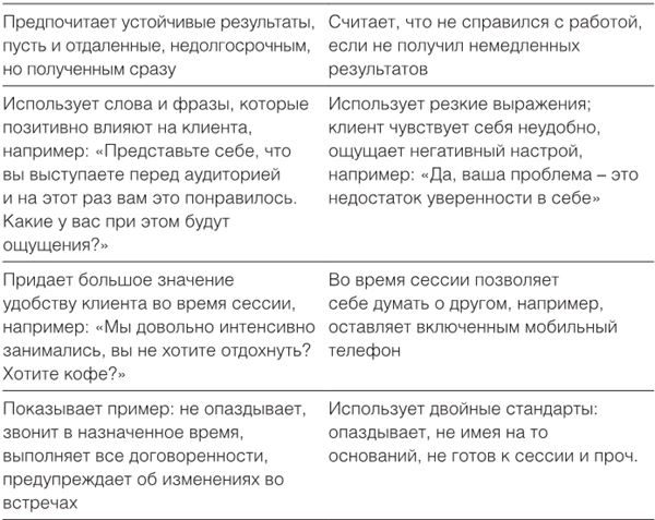 Таблица 2. Признаки хорошего и не очень хорошего коуча