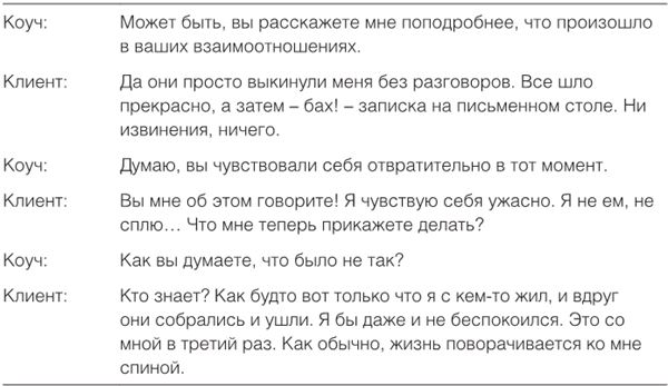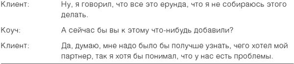 Мы не будем обсуждать, что «правильно», а что «неправильно». В отношениях коуч-клиент любое неодобрение мешает плодотворной беседе. Кроме того, неодобрение коуча обычно передается клиенту, даже если оно не было озвучено.