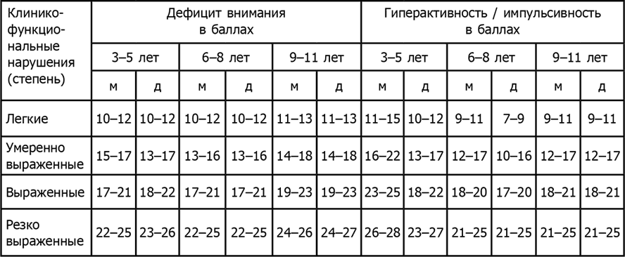 Диагноз СДВГ ставится при суммарном балле выше 28 баллов. В диапазоне 19–28 баллов находятся субпороговые варианты СДВГ.