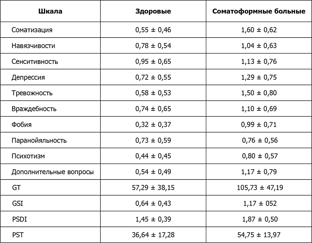 Диапазон показателей для психосоматических больных составляет 40-65 баллов.