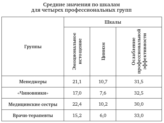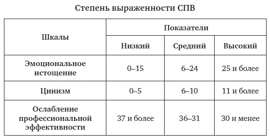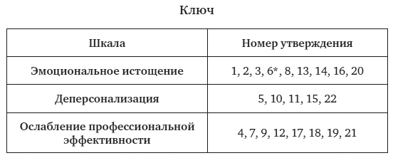 Общая сумма в 50 или более баллов свидетельствует о наличии выгорания.