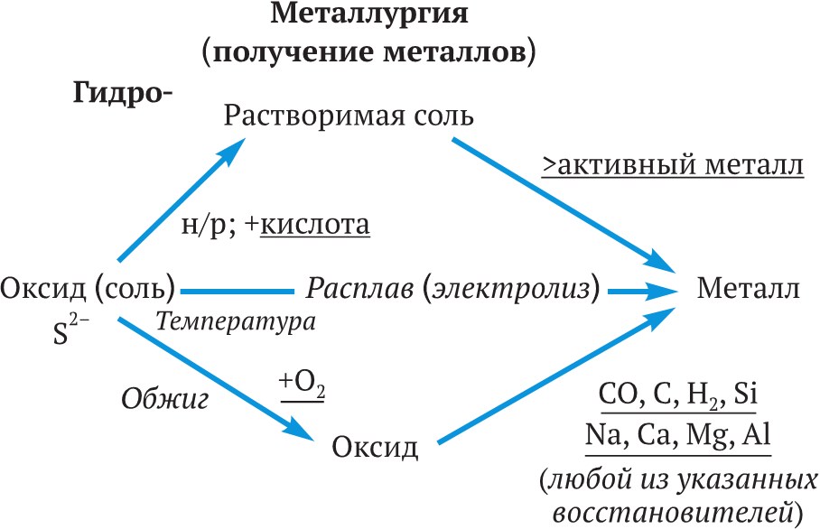 Рис. 1. Металлургия: общая схема химических реакций в процессах при получении металлов. Авторская разработка