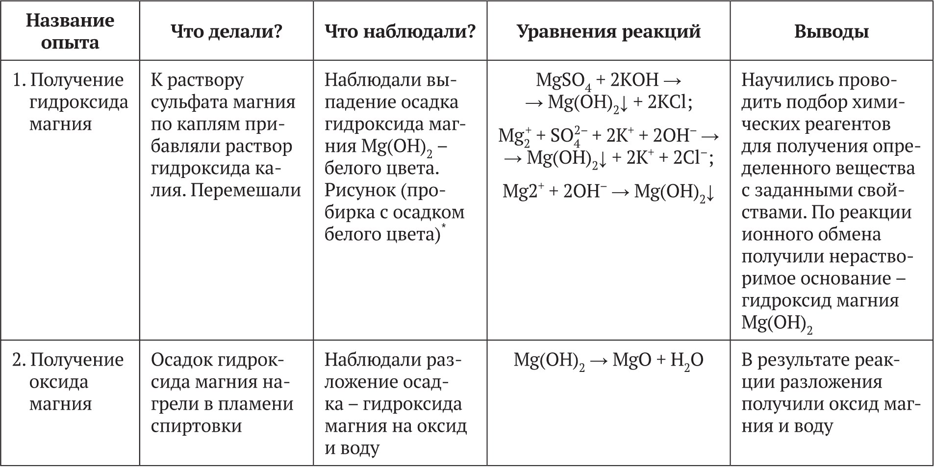 8. Полученный в предыдущем опыте осадок гидроксида магния необходимо нагреть в пламени спиртовки. В результате реакции получится оксид магния, а вода при нагревании испарится.