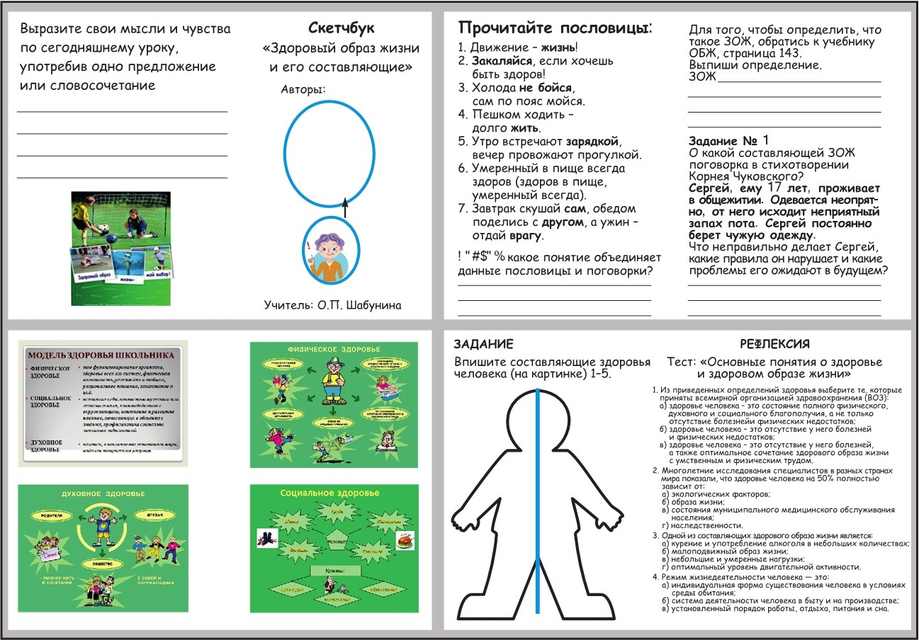 «Скетчбук» – уникальная находка, которая позволяет научиться выделять главное в большом объеме информации, иллюстрировать его и пересказывать, знакомиться с лабораторным оборудованием, биологическими объектами и т.д. Обучающиеся работают в группах, каждый член команды выполняет свою часть задания, которая ему ближе и что он может делать лучше. Один читает и выбирает главное, другой красиво пишет, третий хорошо рисует, четвертый раскрашивает, вырезает, клеит и т.д. При этом они постоянно находятся в диалоге.