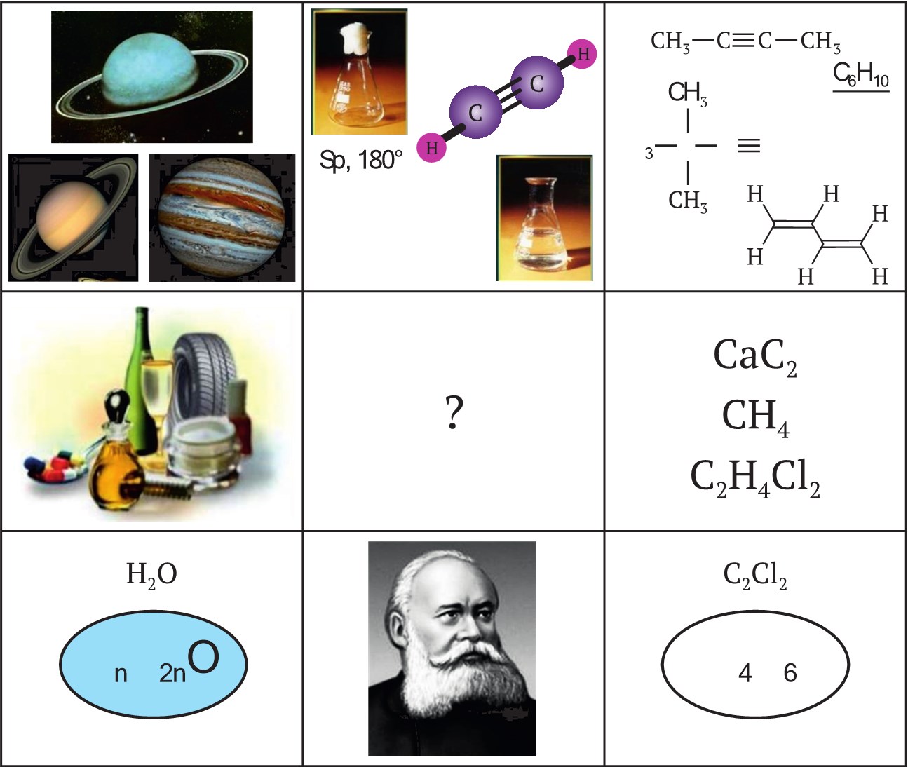 Данный кроссенс представляет из себя последовательность картинок, отражающих план изучения класса органических соединений: нахождение в природе, физические свойства, строение, изомерия, способы получения, химические свойства, применение, представители. На следующем уроке этот же кроссенс может быть использован при проверке домашнего задания.