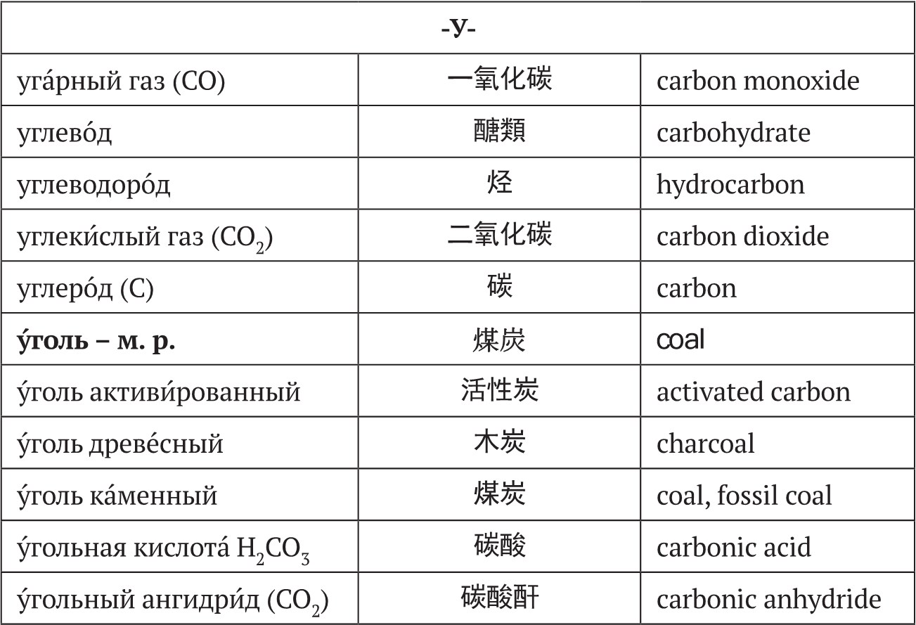 Рис. 1. Фрагмент из словаря к курсам органической и неорганической химии для китайских студентов