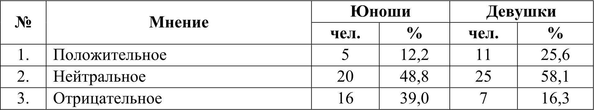 3. Каково отношение современных юношей и девушек студенческого возраста к мужской художественной гимнастике?