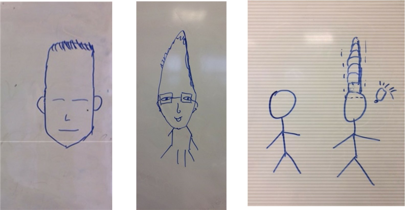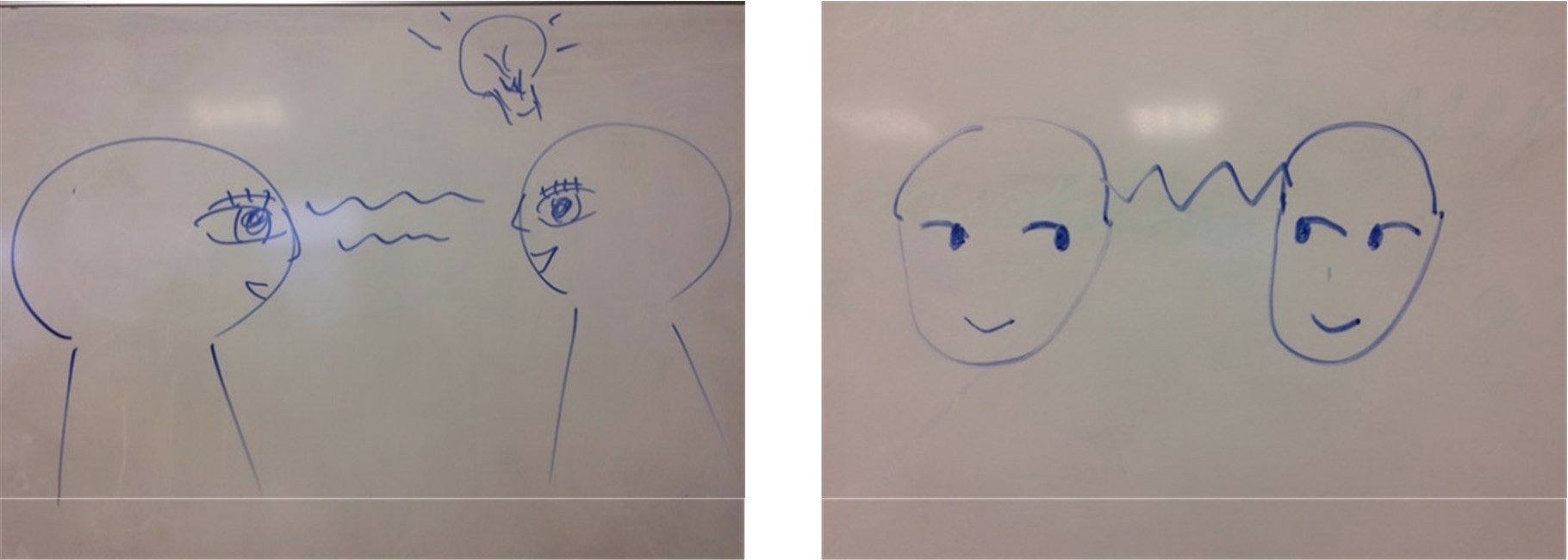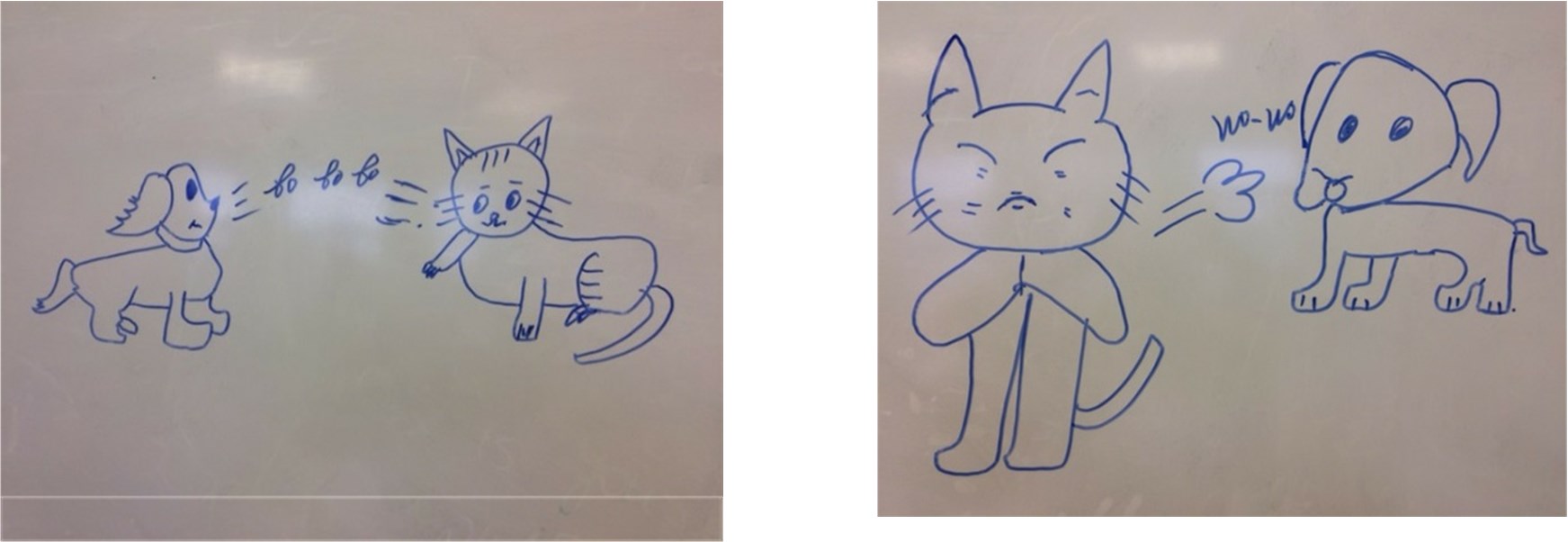 В дальнейшем активным участником процесса становится каждый из студентов, они по очереди выходят к доске и создают по памяти схематические изображения-ассоциации к тому или иному изучаемому фразеологическому обороту. На данном этапе рисунки, выполненные студентами, способствуют выявлению того, как они поняли пройденный материал. Затем студенты описывают свои рисунки и составляют с фразеологизмом предложение.