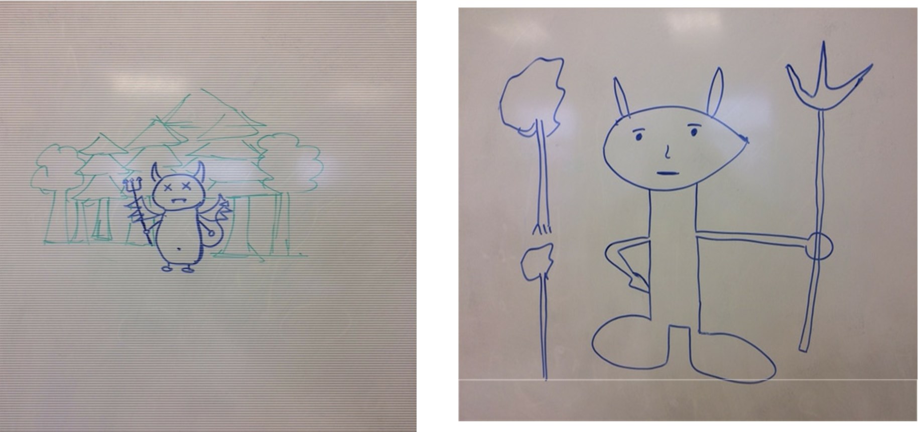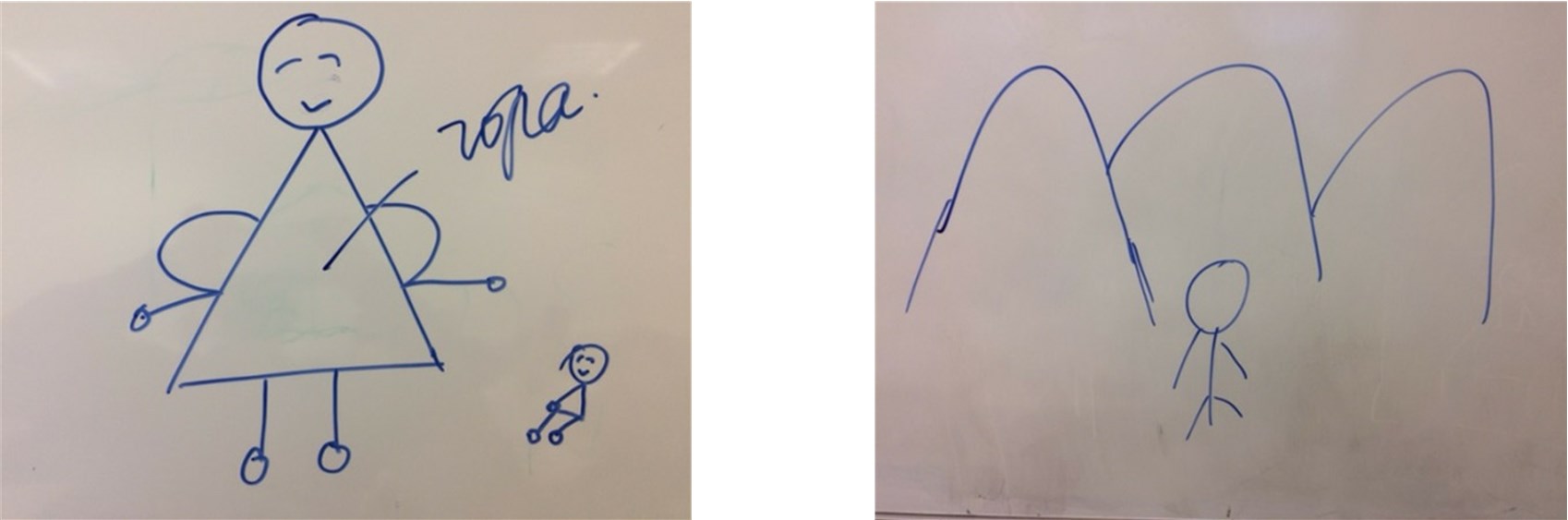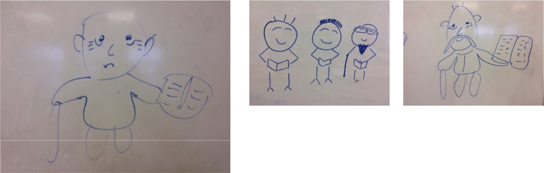 В дальнейшем активным участником процесса становится каждый из студентов, они по очереди выходят к доске и создают по памяти схематические изображения-ассоциации к тому или иному изучаемому фразеологическому обороту. На данном этапе рисунки, выполненные студентами, способствуют выявлению того, как они поняли пройденный материал. Затем студенты описывают свои рисунки и составляют с фразеологизмом предложение.