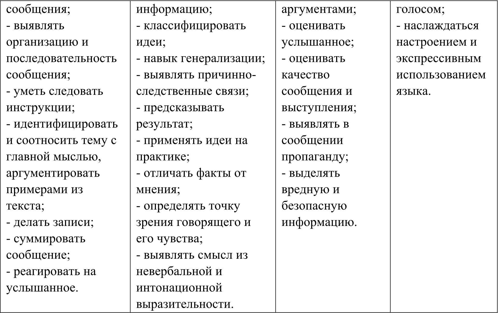 Таблица 1. Умения и навыки осознанного аудирования (Listening for Meaning)