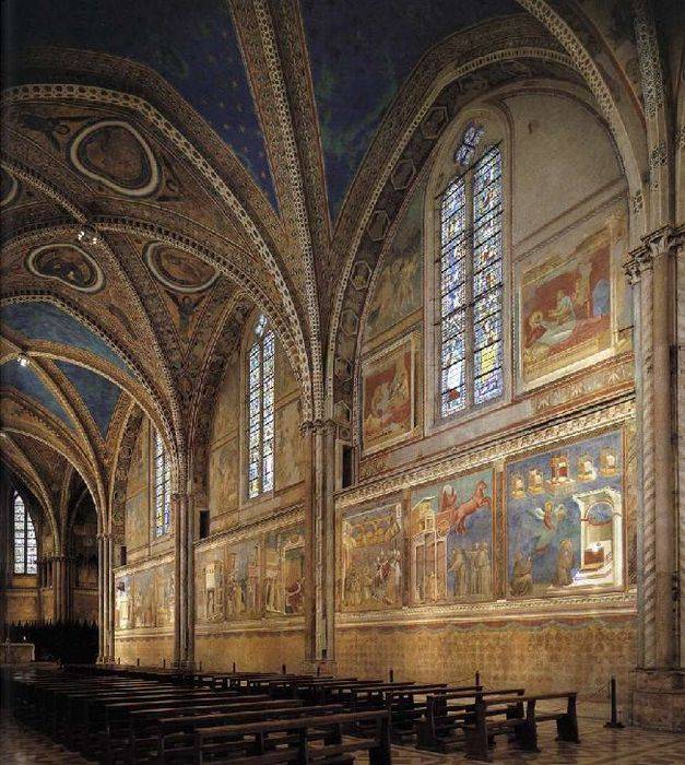 В работах художников готики разворачиваются удивительные сюжеты. Элементы храма буквально врываются в картину, возвышаются, составляют часто неоднозначные сочетания. Именно архитектурные «врезки» создают глубину и объемность, позволяющую открыть одну из прекраснейших страниц готической живописи: теперь человеку есть дело до «пустяков». Точнее, наоборот, все в повседневной жизни приобретает смысл, никакое делание не является пустячным. Пастух, стерегущий овец, вереница всадников – все располагается на полотне-панораме. Появившаяся глубина дает возможность в одном пространстве разместить и божественное, и земное. В работах средневекового живописца пространство часто замкнутое, мы не увидим уходящей в бесконечность дали – объемность мира, раздвигание его границ происходит благодаря сочетанию простого, обыденного и высокого, небесного.