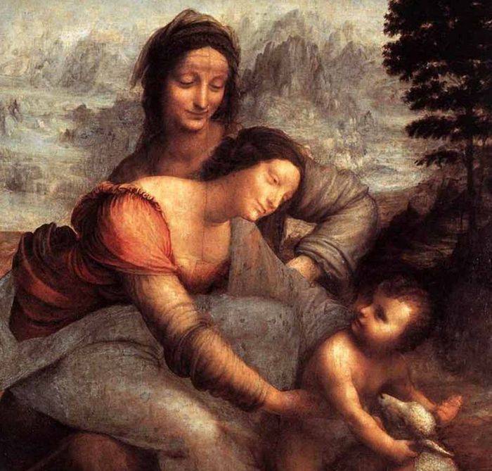 Леонардо да Винчи. Святая Анна с Мадонной и младенцем
