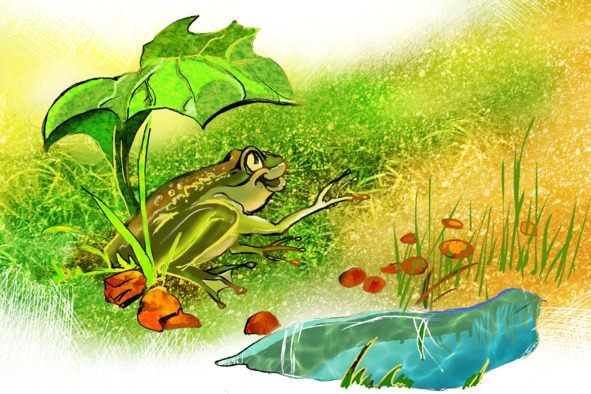 – Ква! Ква-ква! ― раздалось прямо в ухо спящего Львёнка. Он открыл глаза и увидел небольшую зелёную лягушку в белую крапинку.