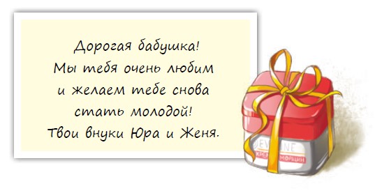 Однако Юре показалось, что этого мало. Он решил дополнить свой подарок поздравительной открыткой. Выбрал одну из них с красивыми яркими цветами и подписал: