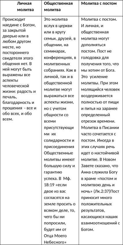 В табличке на странице 8 приведены три вида молитв. Подтверждение этому находим в Слове Божием: