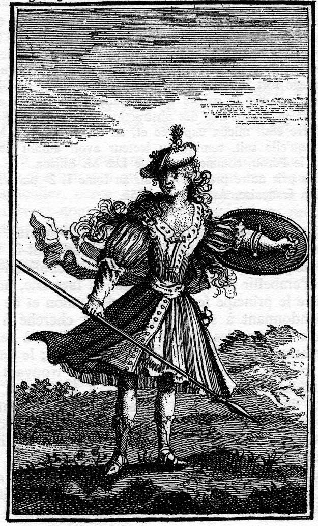 Gleichberechtigung der Geschlechter ist in diesen frühen Utopien eher eine Seltenheit, sie wurden ja auch von Männern verfaßt. Schlimmer noch: In manchen Utopien, die kommunistische Züge tragen, also die Abschaffung des Privateigentums propagieren, erstreckt sich der Gemeinbesitz auf die Frauen. Anhänger kommunistischer Vorstellungen waren daher lange, noch bis ins 20. Jahrhundert hinein, dem Vorwurf ausgesetzt, die »Weibergemeinschaft« zu propagieren. Aber es gibt auch Ausnahmen, beispielsweise bei Louis Rustaing de Saint-Jory (?–1752). In dessen Bericht über die fiktive Insel Manghalour[16] (1735) staunen die Entdecker nicht schlecht, als sie dort auf eine französischsprachige Gemeinschaft stoßen. Sie erfahren, daß im weit zurückliegenden Jahr 1198 ein Schiff hier in Seenot geraten sei. Die Schiffbrüchigen, zu denen auch einige Frauen gehörten, siedelten sich auf der Insel an, heirateten, zeugten Kinder, kämpften gegen die Eingeborenen. Da sie so wenige waren, mußte auch das vermeintlich schwache Geschlecht zur Waffe greifen. Im Verlaufe der Jahrhunderte besetzen die femmes militaires dann mehr und mehr öffentliche Posten und erringen schließlich die Gleichberechtigung. – Wie im realen 20. Jahrhundert haben Kriege der Emanzipation zum Durchbruch verholfen.