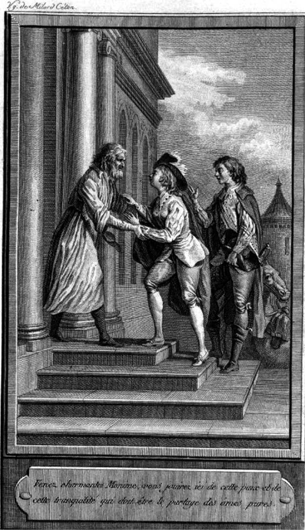 Nun liegt gerade beim Thema Gleichberechtigung die Frage nahe: Wo bleiben die Autorinnen von voyages imaginaires? Das Genre befindet sich, urteilt man nach einschlägigen Bibliographien, fest in Männerhand – so wie bis in die zweite Hälfte des 20. Jahrhunderts hinein die Science Fiction. Immerhin gibt es eine hervorstechende Ausnahme: Voyage de Milord Céton dans les sept planètes (Die Reise des Lord Céton zu den sieben Planeten)[19] von Marie-Anne de Roumier-Robert (1705–1771). Das Buch erschien zuerst in zwei Bänden 1765 und 1766 in Den Haag, angeblich als eine Übersetzung aus dem Englischen von »Madame de RR«; 1787 wurde es – diesmal mit Angabe der Autorin – nachgedruckt.