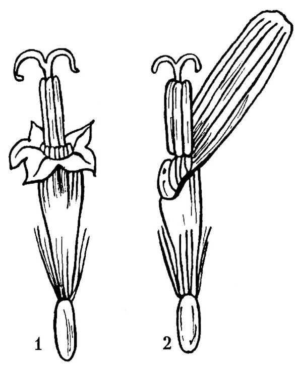 Рис.18. Трубчатый (1) и язычковый (2) цветки георгины