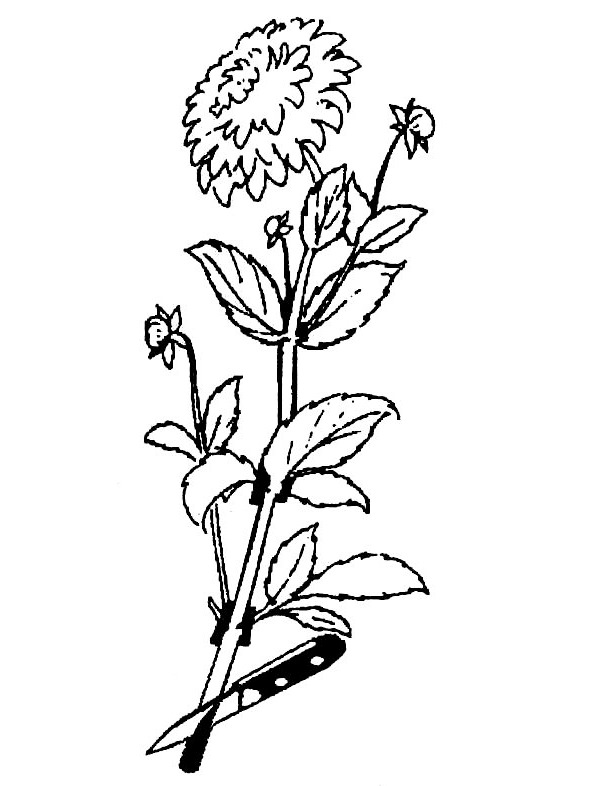 Для букета георгины срезают с полностью распустившимися соцветиями. Со стебля удаляют все бутоны и большую часть листвы, кончик его обрезают наискось (рис. 20).