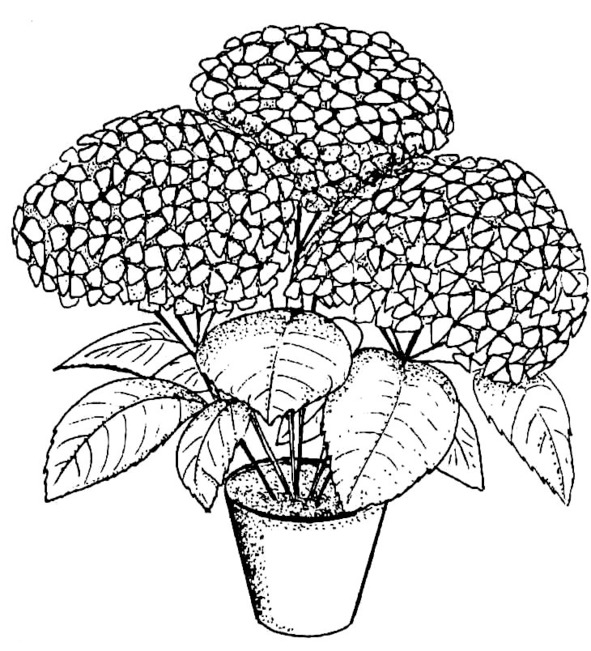 Горшок должен быть чисто вымытым, иметь отверстие в дне. Отверстие закладывают черепком (выпуклой стороной вверх) и затем на дно насыпают слой песка толщиной 1 см. Для заполнения горшка используется смесь земли, состоящая из равных частей дерна, торфа и песка. Готовят смесь за 5—10 дней до посадки гортензий в горшки, чтобы она успела «перебродить».