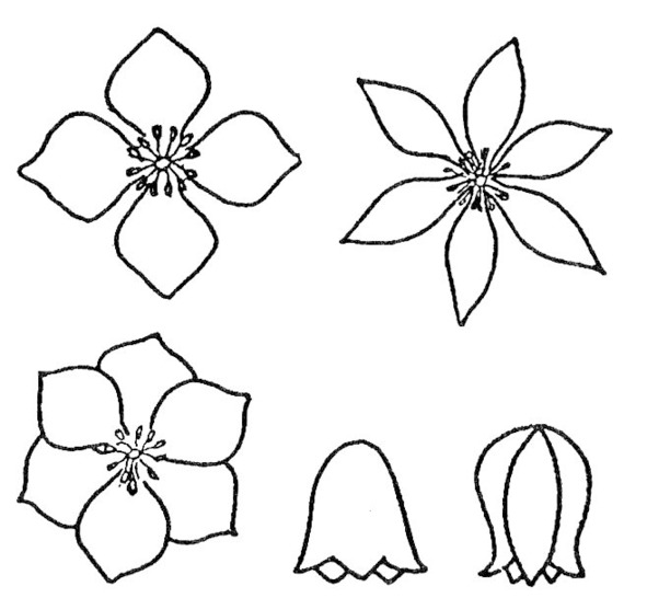 Цветет клематис обильно, в период с июня по сентябрь – октябрь. Жизнь отдельного цветка при этом продолжается 5—10 дней. В зависимости от вида и сорта клематиса цветки образуются на побегах прошлого и текущего года. Дикорастущие виды обладают цветками малого размера – 2—4 см в диаметре, культурные – крупными, до 10—20 см в диаметре. Форма цветков довольно разнообразна (рис. 31).