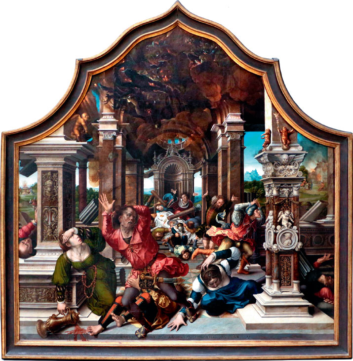 Барент ван Орлей. Гибель детей Иова. Средняя часть триптиха «Добродетель терпения». 1521