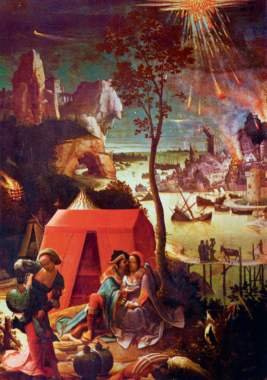 Сопоставим два текста. Первый – из Библии: «И пролил Господь на Содом и Гоморру дождем серу и огонь от Господа с неба, и ниспроверг города сии, и всю окрестность сию, и всех жителей городов сих, и произрастения земли. Жена же Лотова оглянулась позади его, и стала соляным столпом. 〈…〉 И жил (Лот. – А. С.) в пещере, и с ним две дочери его. И сказала старшая младшей: отец наш стар, и нет человека на земле, который вошел бы к нам по обычаю всей земли; итак напоим отца нашего вином, и переспим с ним, и восставим от отца нашего племя. И напоили отца своего вином в ту ночь; и вошла старшая и спала с отцом своим; а он не знал, когда она легла и когда встала. На другой день старшая сказала младшей: вот, я спала вчера с отцом моим; напоим его вином и в эту ночь; и ты войди, спи с ним, и восставим от отца нашего племя. И напоили отца своего вином и в эту ночь; и вошла младшая и спала с ним; и он не знал, когда она легла и когда встала. И сделались обе дочери Лотовы беременными от отца своего»[439].