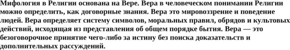 В центре Мифологии христианской веры лежит Миф об единстве Бога Отца, Сына и Святого Духа. Бог в представлении христиан совершенен, он воплощает абсолютный разум и любовь. Христиане считают, что душа бессмертна. Это Миф.