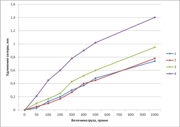 Рассмотрим диаграмму «Остаточная деформация склеры» представленную в монографии Аветисова Э. С. «Близорукость» [Рисунок 36].