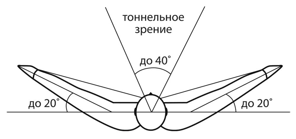 – Если человек видит пространство перед собой в пределах 40°, это называется «тоннельное зрение». Для водителя это серьезный недостаток. Обычно рекомендуют компенсировать его повышением внимания и осторожности и снижением скорости при проезде участков, где возможно появление опасности сбоку. При этом водителю приходится часто поворачивать голову влево-вправо.