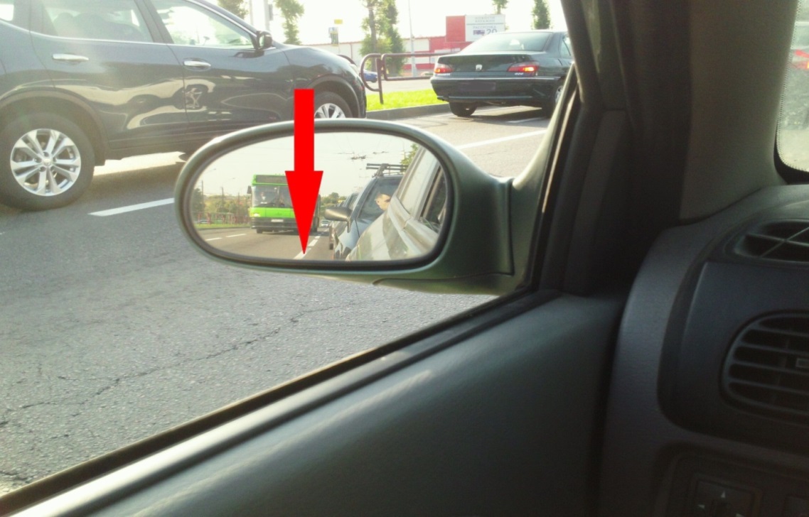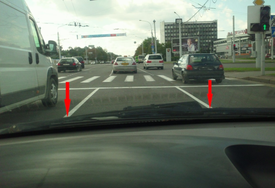 Красной стрелкой на ней отмечена разделительная полоса, относительно которой можно ориентироваться на своей полосе движения.