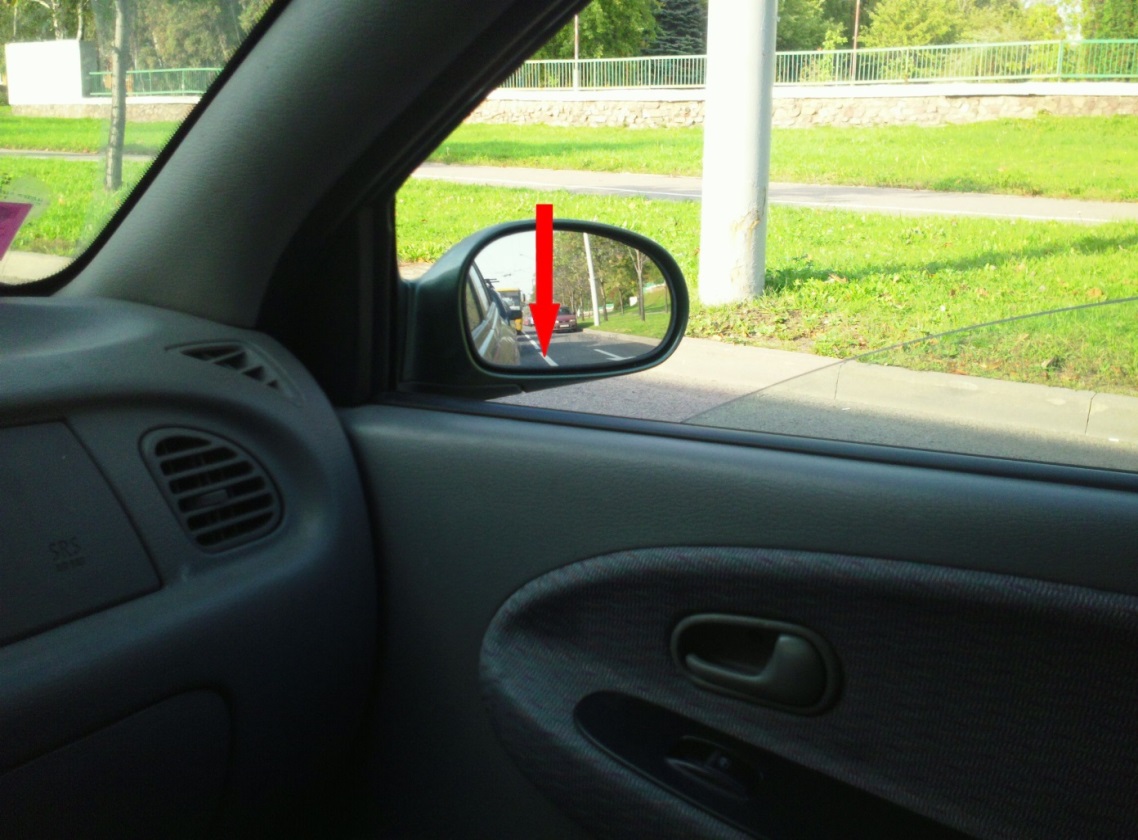 Боковые зеркала помогут ориентироваться относительно стоп-линии и препятствия спереди. Останавливаетесь прямо перед стоп-линией (можно воспользоваться посторонней помощью, Фото 1.6.)