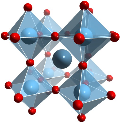 Однако, тем же именем принято называть и другие материалы с такой же структурой. Сам титанат кальция состоит из атомов трех типов: А (атомы кальция), В (титана) и Х (иногда их называют С, атомы кислорода). Причем А находится в центре псевдокубических структур, В – в угловых узлах псевдокуба, а С образуют вокруг В восьмигранники, на шести вершинах которых находятся как раз по шесть атомов кислорода. В этой стандартной структуре практически любой из атомов обычной схемы ABX3 может быть заменен на относительно сходный по свойствам. И структура в целом при этом сохранится. При этом А—всегда большой катион (положительно заряженный ион), В—всегда катион меньшего размера чем А, а Х—всегда анион (отрицательно заряженный ион). Даже среди природных минералов часто встречаются те, в которых А был не кальцием, а, например, церием, да и В—не титаном, а ниобием или танталом.