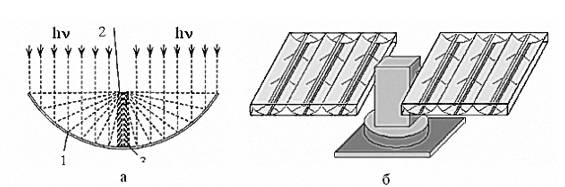 Рис.2.11. Солнечная батарея на основе каскадных солнечных элементов с цилиндрическими отражателями