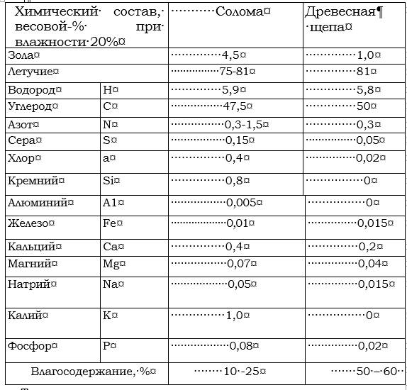 Таблица 2.3. Химический состав соломы и древесной щепы