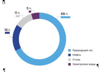 Водород можно получать на основе различных источников сырья, применяя для этого самые разнообразные технологии. Около 68% производимого в настоящее время водорода получают риформингом (конверсией) природного газа (метана, попутного нефтяного газа), 16% – риформингом нефти и жидких нефтепродуктов, 11% – газификацией угля и 5% – электролизом воды. В разработке находятся также новые способы получения водорода, включая биохимические методы, термохимическое расщепление воды энергией солнца, высокотемпературный электролиз и другие.