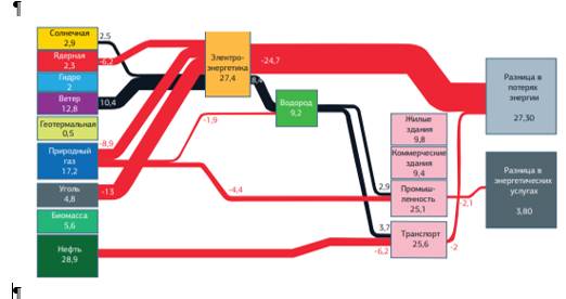 Рис. В.3. Предполагаемая диаграмма энергопотоков в США в 2040 г.