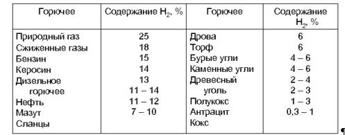 Таблица 1.1. Примерное содержание водорода в различных видах горючего.