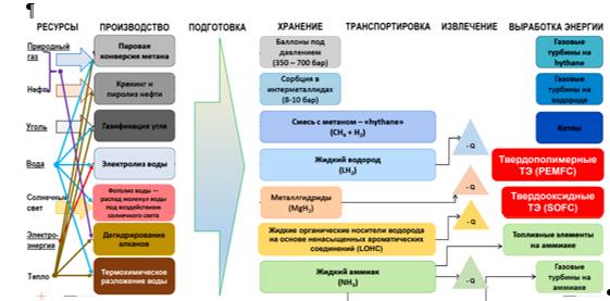 Показанная технологическая цепочка водородной энергетики дает общее представление о масштабности и сложности решения проблемы.
