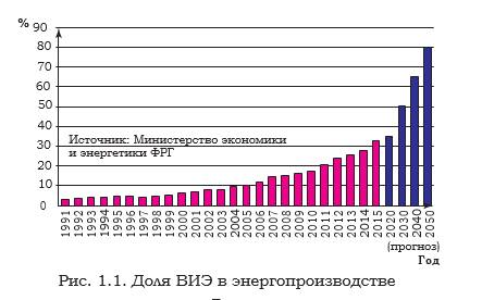Рис. 2.1. Доля ВИЭ в энергопроизводстве Германии