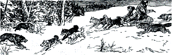 На пути вдруг встали запорошенные снегом кусты, деревья. Оттуда наперерез упряжке выскочили еще два волка, задние догнали, и в тот же миг все смешалось в один рычащий клубок.