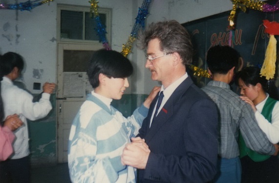Там уже было много моих студентов. Наше появление произвело эффект разорвавшейся бомбы. Послышались бурные восторженные крики, девочки со всех концов через весь зал побежали нам навстречу. Танцующие смешались и остановились. Было даже как-то неудобно. Но тут вновь зазвучала музыка. Это был именно вальс, танец, который я умею и люблю танцевать. Пока я смущался, Аня Лю быстро подбежала и пригласила меня, в Китае не очень сильно придерживаются правил танцевального этикета. Мы с ней стали кружить по еще пустому залу под аплодисменты присутствующих.